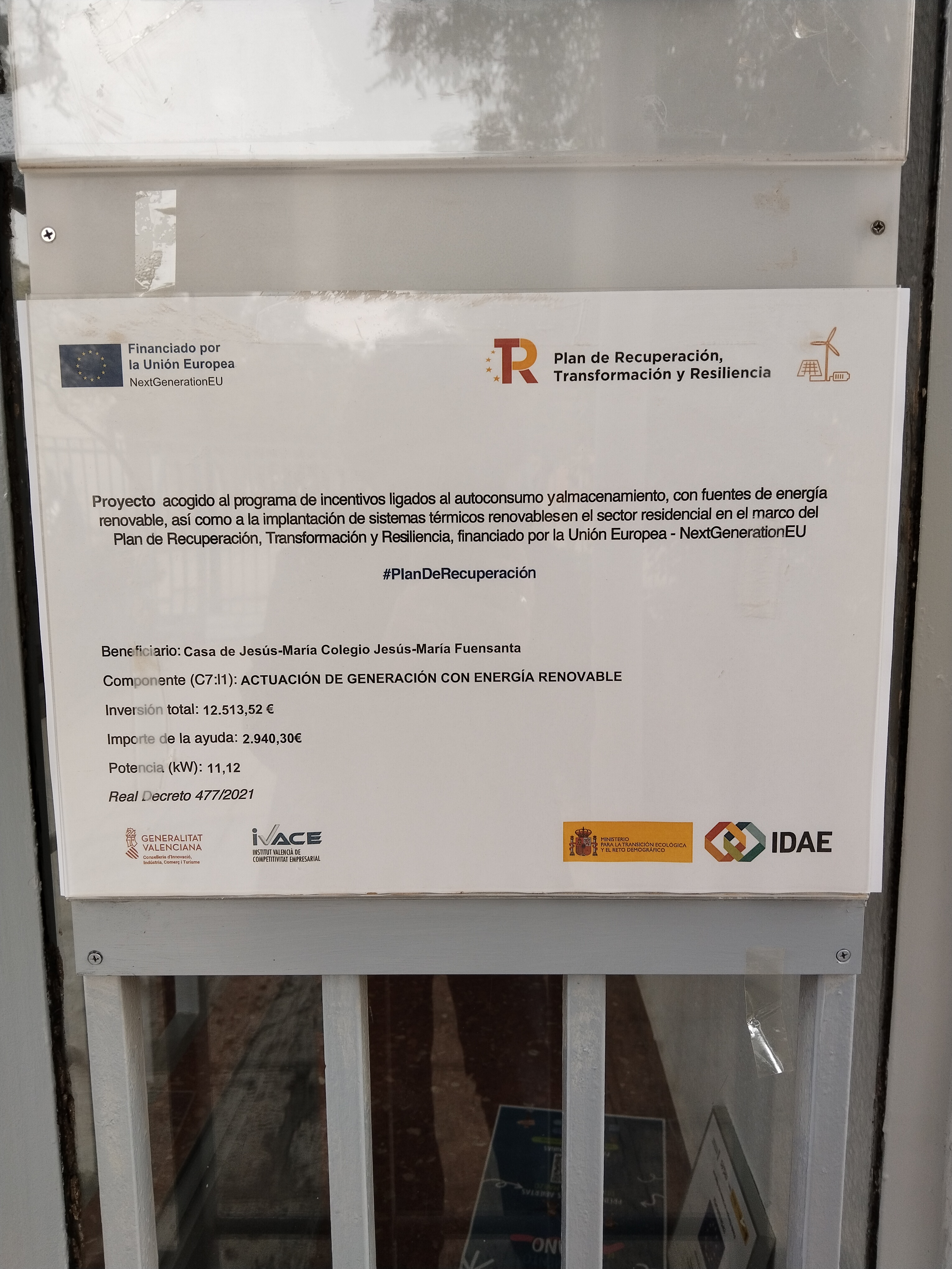 Por ello hemos iniciado una transición ecológica que consiste en la instalación de placas solares en muchos de los edificios en los que Jesús-María tiene representación en España.